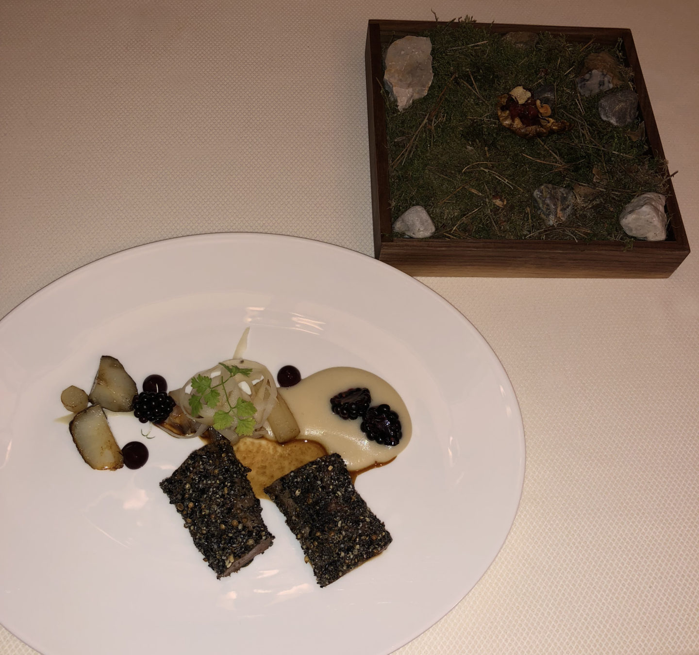 Each course was simply amazing: combinations of flavours and ingredients were unique. I loved the amuse bouche and the starters they served. One of my favourite dishes was the spinach cream with egg yolk, chicken, porcini and truffle which was served in a little bowl. I had a bad experience with octopus at another place earlier, but this time I wasn’t afraid to taste it. It was delicious and I have to emphasize the freshness and impeccable quality of the ingredients. The service was very friendly and completely professional.