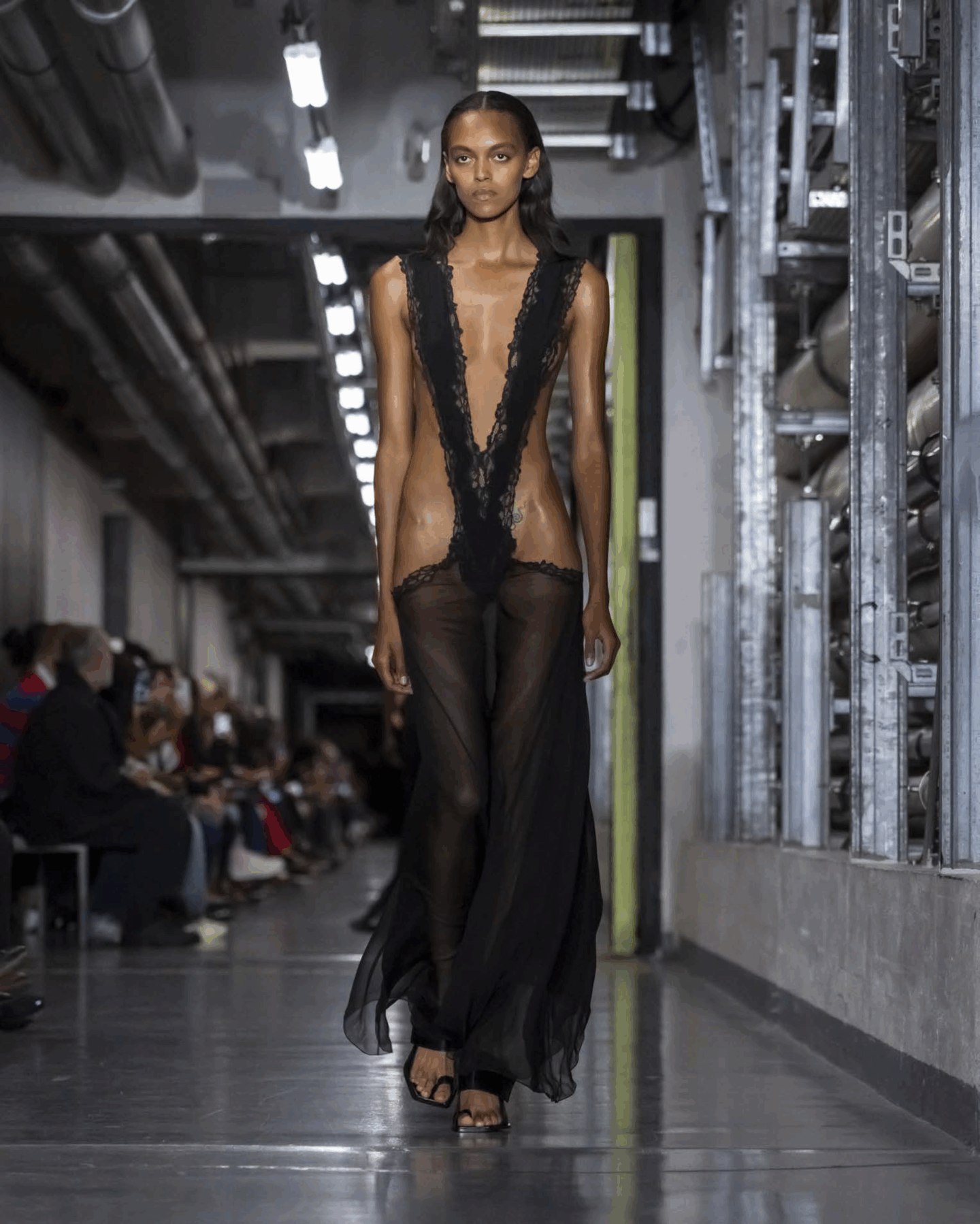 Lantink’s debut show took place in the industrial, subterranean corridors of the Musée du quai Branly – Jacques Chirac, marking Gaultier’s return to the ready-to-wear calendar after several seasons of haute couture collaborations with guest designers. While this collection didn’t aim to “break the internet,” it delivered the cerebral provocation Lantink is celebrated for.