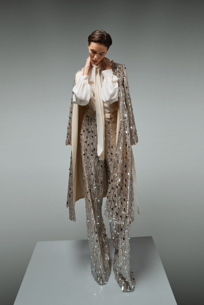 The De Santis by Martin Alvarez collections stand out for their excellence in the search for shapes and materials, the precision and innovation in their workmanship and the exclusivity of their details. These qualities are made possible thanks to the craftsmanship and tailoring expertise that have characterised the De Santis company for more than 60 years. Each garment is entirely made in Italy using the finest fabrics and the best artisans, offering a product of superior quality. From carefully selected raw materials to the final creation, every step respects the most authentic tradition of Italian couture.